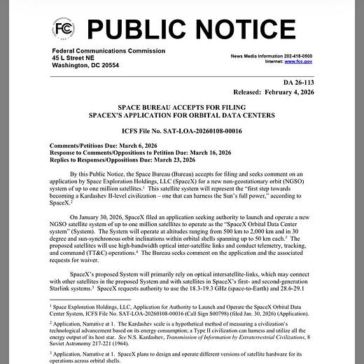 Seeing that phrasing from the FCC Chairman was jarring. Kardashev has moved from fringe science fiction to the language of policy.